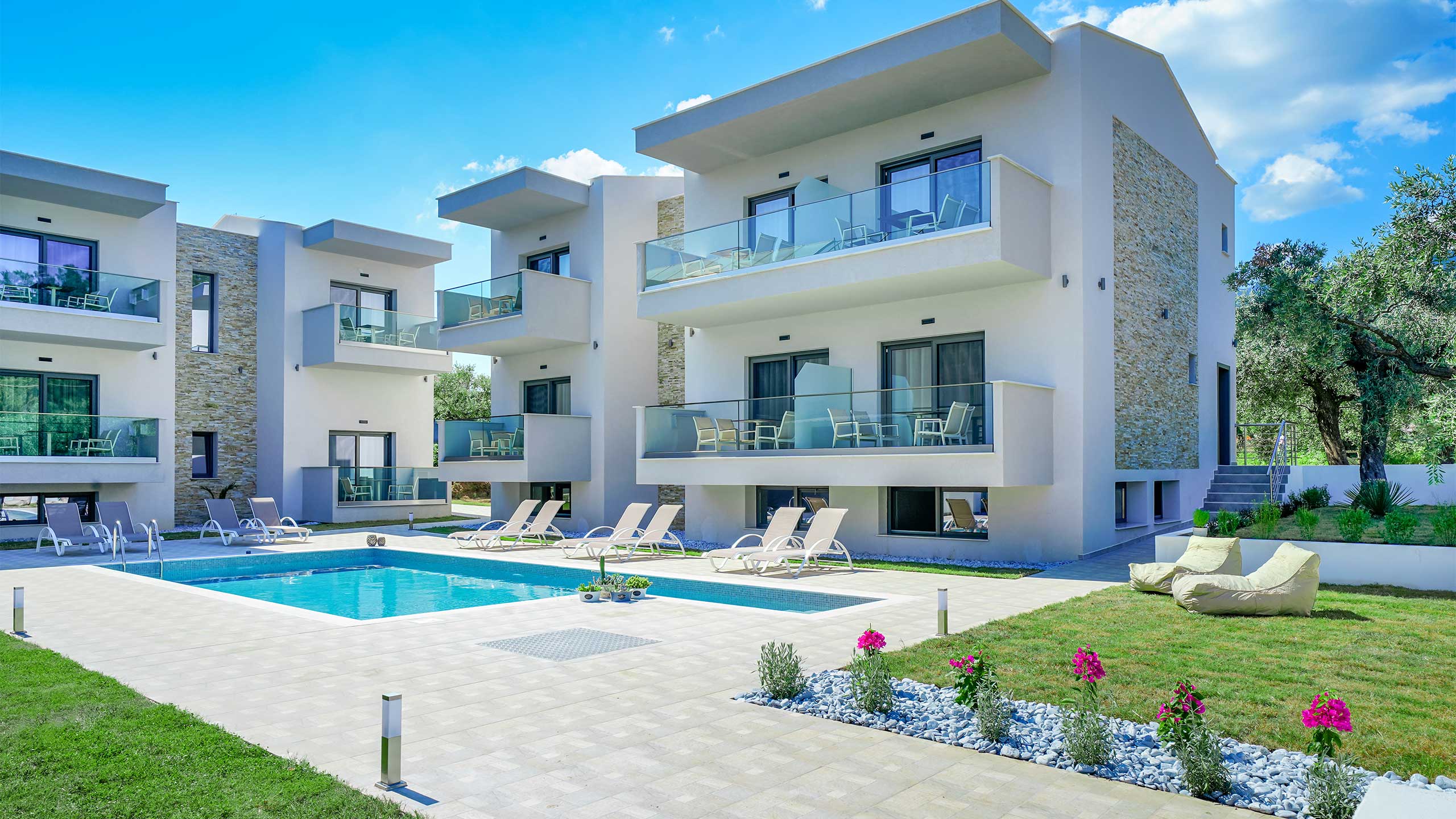 Aquamarine Luxury Rooms is a brand new accommodation just outside Limenas designed to offer you a carefree holiday on Thassos. Surrounded by age-old olive trees and just 2 minutes’ walk from the nearest sandy beach, our 12 luxurious rooms with modern architecture and careful decoration can comfortably accommodate up to 4 people.